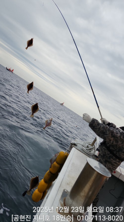 금일 일곱분모시고 출조다녀왔습니다.8~15m권 공략,10월 중 가장 좋은 기상이 아니었나 싶습니다.용왕님이 기상은 허락하셨지만고기는 안주시네요 ㅜㅜ키로급 1수 외 10수로 총11수로 마무리 합니다ㅜㅜ출조 다녀오신 조사님들 모두들 수고하셨습니다. *** 고성 지니호&용한호 예약안내 ***예약문의 : 010-7113-8020오시는길 : 강원도 고성군 죽왕면 공현진해변길 51네이버밴드 : https://band.us/@genieho홈페이지 : https://genieyonghan.sunsang24.com/