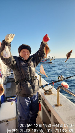 금일 여덟분모시고 출조다녀왔습니다.6~15m권 공략,너울, 파도, 바람까지 쉽지않은 여건이었지만계속해서 나이지고 있는 조황이네요...바닥권 수온이 오르니 깊은 곳에서 반응해줍니다.여성조사님 탓다하면 장원입니다!오늘도 8수에 키로오버, 키로급 다수~키로오버 선물증정해드렸습니다.감자 3개 외 고구마, 무급, 키로급 손맛보고 왔네요...출조 다녀오신 조사님들 모두들 수고하셨습니다. *** 고성 지니호&용한호 예약안내 ***예약문의 : 010-7113-8020오시는길 : 강원도 고성군 죽왕면 공현진해변길 51네이버밴드 : https://band.us/@genieho홈페이지 : https://genieyonghan.sunsang24.com/