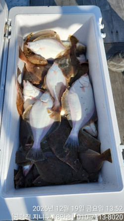 금일 50~70m권 공략,어제와 다르게 오늘은 어군이 있다없다를 반복하네요...어군이 있을땐 4~6마리, 없을땐 반응이 없었습니다.조과도 어제보단 저조하지만 광어급가자미 비중은더 많았습니다.1/3쿨러에서 반쿨러 입니다.출조 다녀오신 조사님들 모두들 수고하셨습니다. *** 고성 지니호&용한호 예약안내 ***예약문의 : 010-7113-8020오시는길 : 강원도 고성군 죽왕면 공현진해변길 51홈페이지 : https://genieyonghan.sunsang24.com/