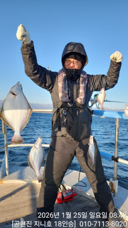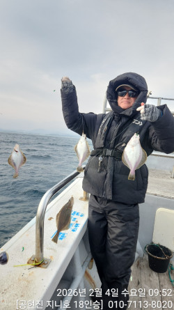 금일 50~60m권 공략중,광어급 가자미들 잘 나오고있습니다.내일 출조모집중입니다~ *** 고성 지니호&용한호 예약안내 ***예약문의 : 010-7113-8020오시는길 : 강원도 고성군 죽왕면 공현진해변길 51네이버밴드 : https://band.us/@genieho홈페이지 : https://genieyonghan.sunsang24.com/