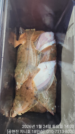 금일 50~60m권 공략,아침부터 종료때까지 광어급가자미들이 꾸준하게 올라왔습니다.순력자분들은 쿨러 넘치게 잡으시고,초보조사님들도 반쿨이상은 하셨네요.채비는 모리겐, 하야부사, 사사메등 간장어피채비,선택이 아닌 필수입니다.쿨러는 24~32리터가 적당합니다.출조 다녀오신 조사님들 모두들 수고하셨습니다. *** 고성 지니호&용한호 예약안내 ***예약문의 : 010-7113-8020오시는길 : 강원도 고성군 죽왕면 공현진해변길 51네이버밴드 : https://band.us/@genieho홈페이지 : https://genieyonghan.sunsang24.com/